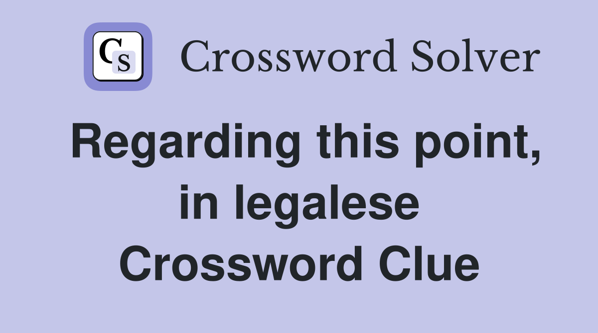 Regarding this point in legalese Crossword Clue Answers Crossword