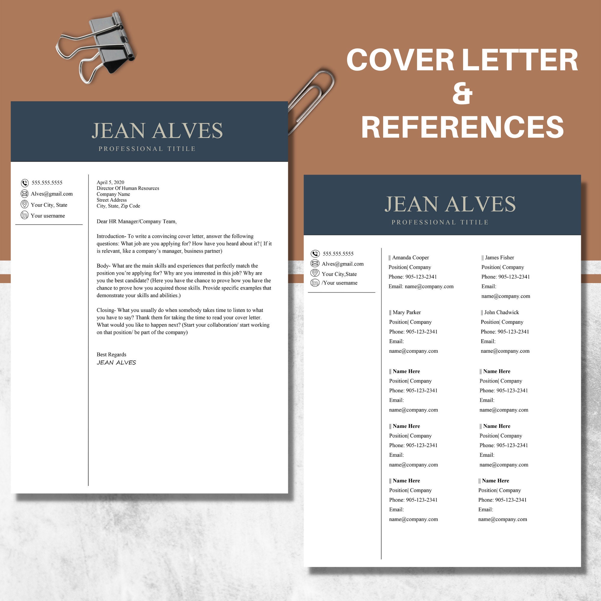 Resume References Template Etsy