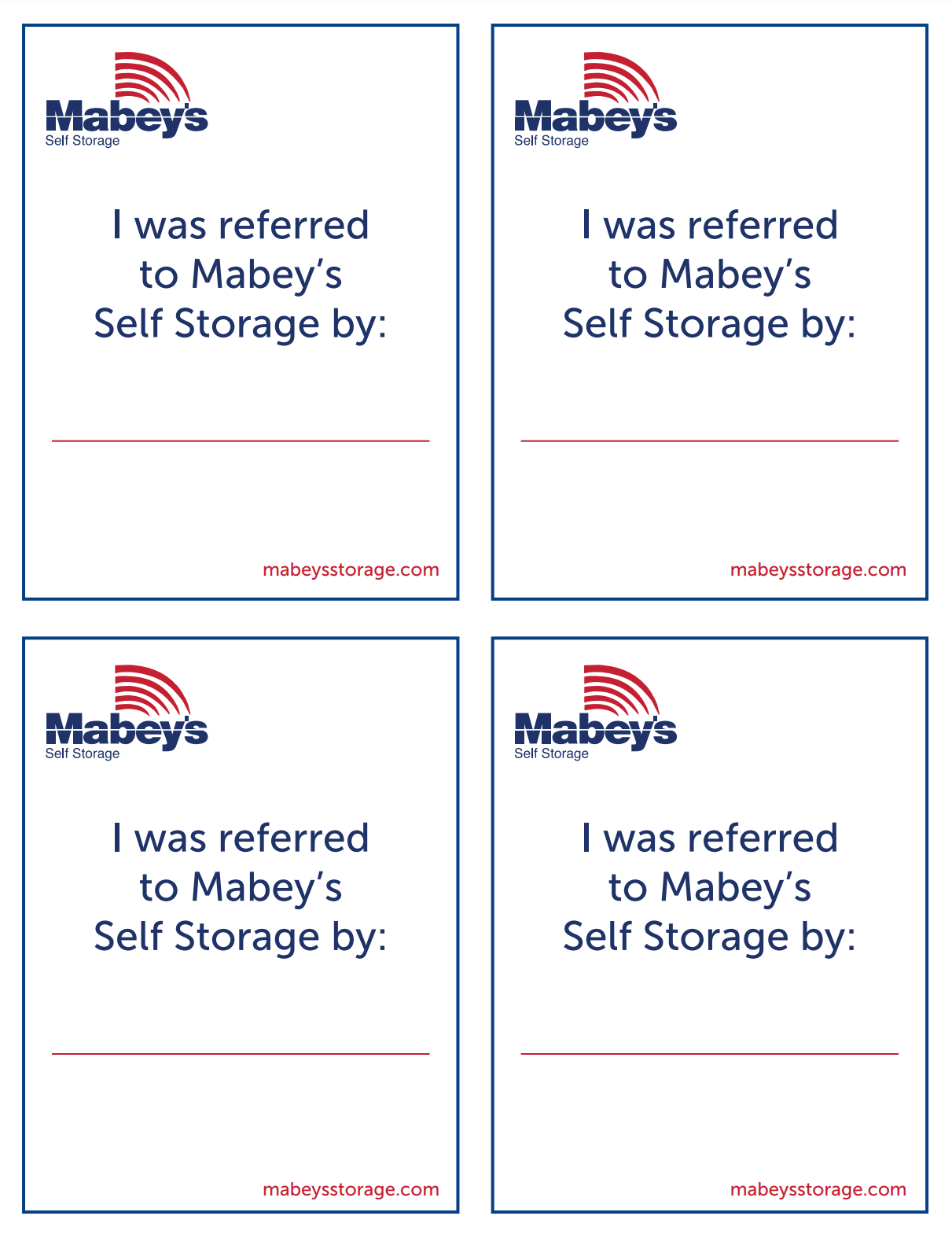 Mabey #39 s Referral Cards Mabey #39 s Self Storage