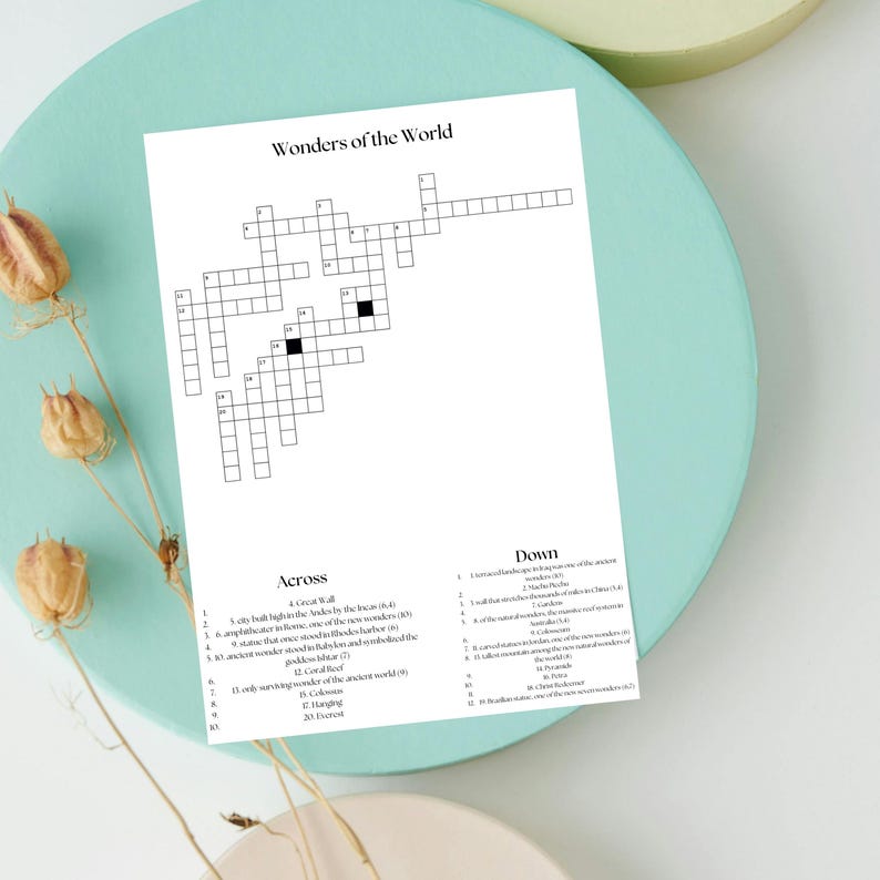 Custom Crossword Puzzle Game Puzzle for Adults Printable 5x7 Family