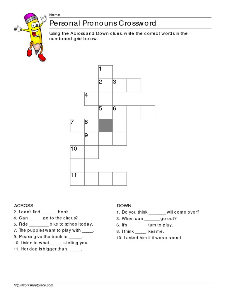 Personal Pronoun Crossword PDF