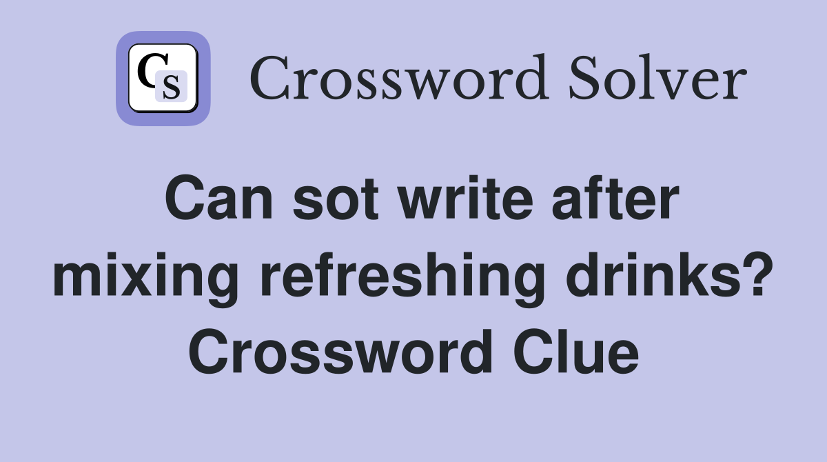 Can sot write after mixing refreshing drinks? Crossword Clue Answers