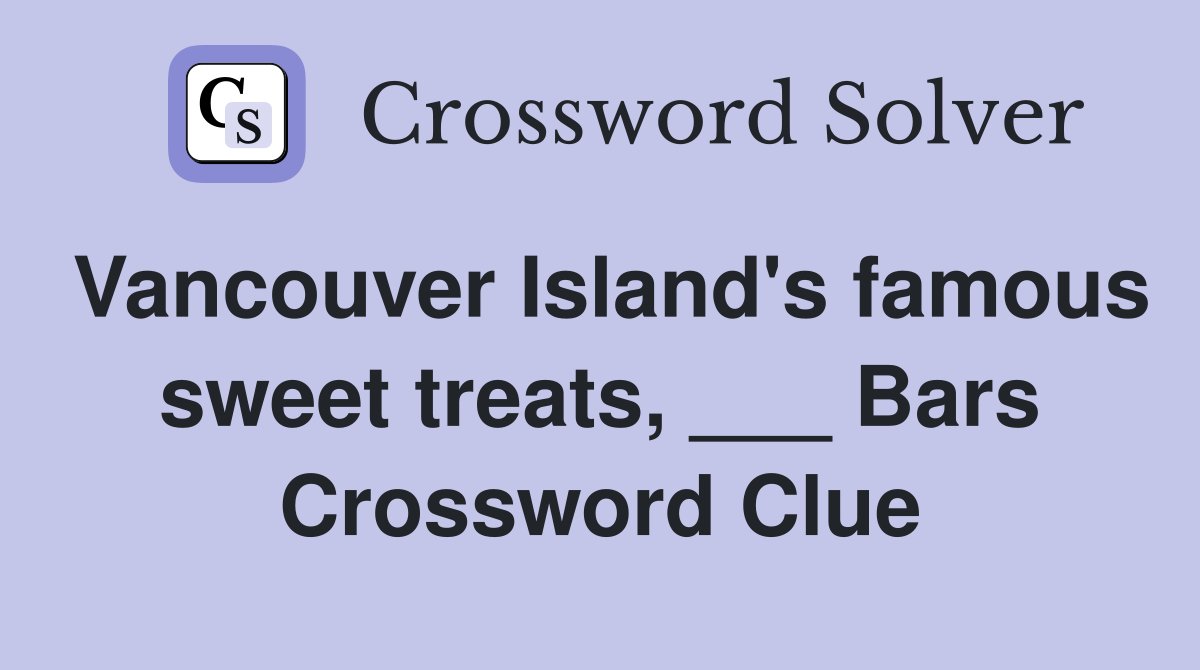 Vancouver Island #39 s famous sweet treats Bars Crossword Clue
