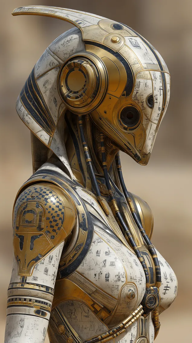 Regal Sci Fi Egyptian Cyborg in Desert Environment premium HD wallpaper