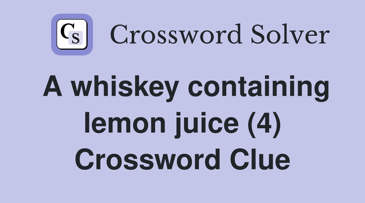 A whiskey containing lemon juice (4) Crossword Clue Answers