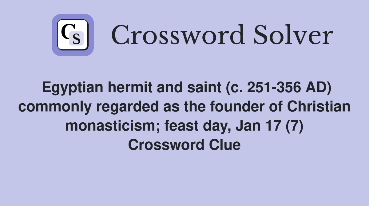 Egyptian hermit and saint (c 251 356 AD) commonly regarded as the