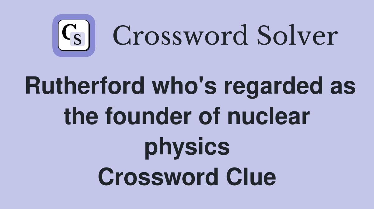 Rutherford who s regarded as the founder of nuclear physics Crossword