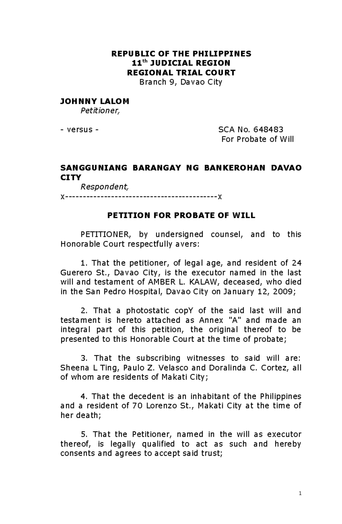 297736933 Sample Petition for Probate of Will REPUBLIC OF THE