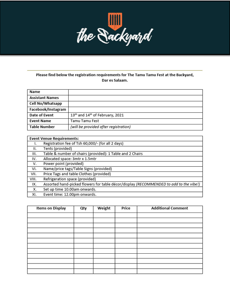 Tamu Tamu Vendor Registration Form PDF