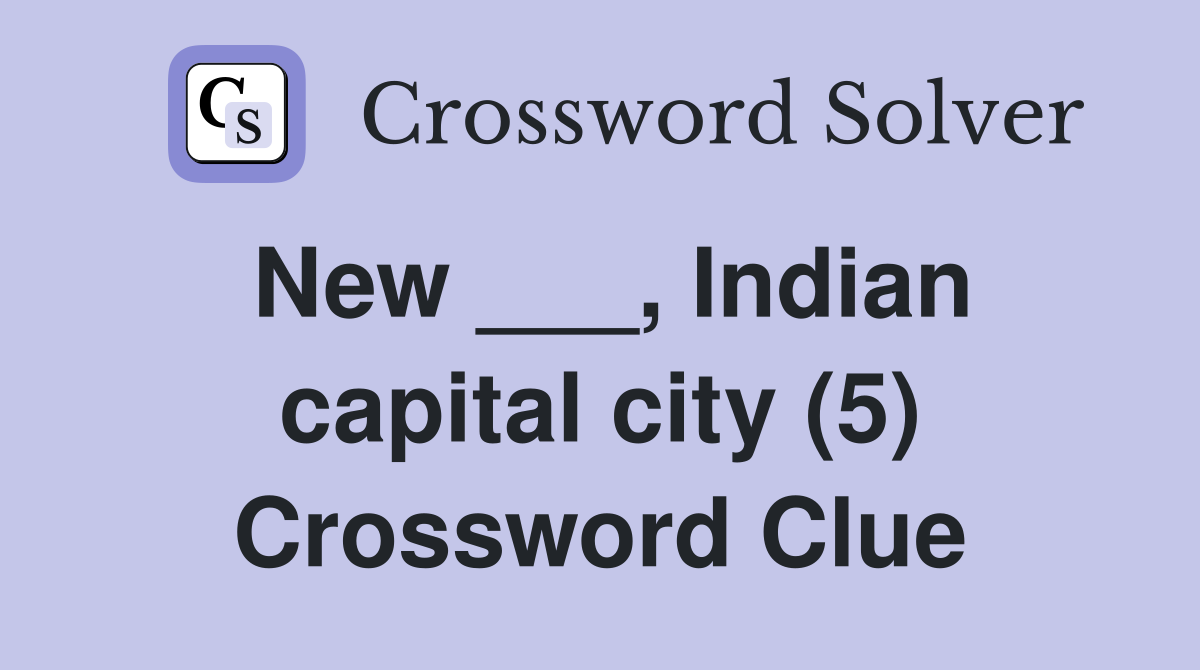 New Indian capital city (5) Crossword Clue Answers Crossword