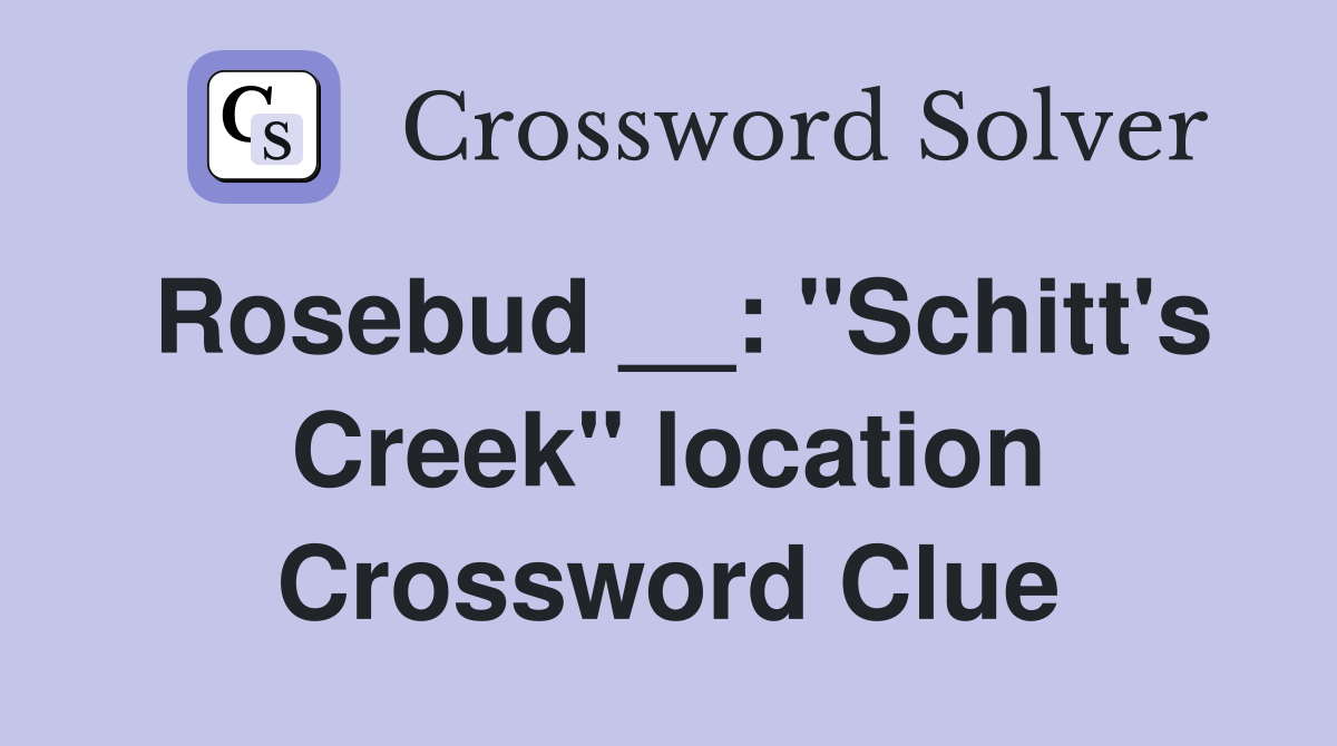 Rosebud : quot Schitt #39 s Creek quot location Crossword Clue Answers