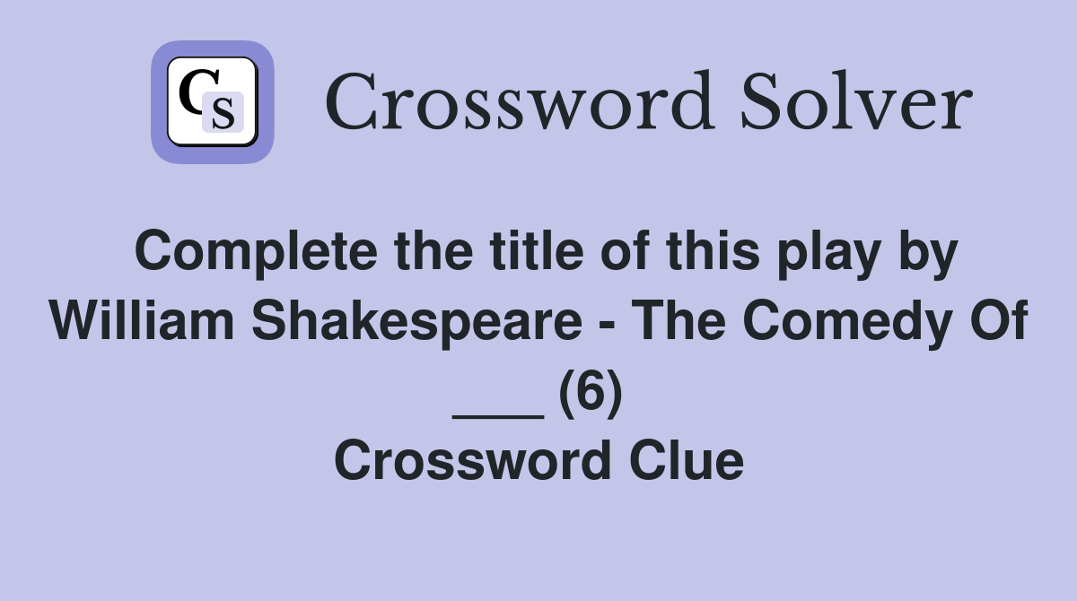 Word in the title of a Shakespeare comedy Crossword Clue Answers