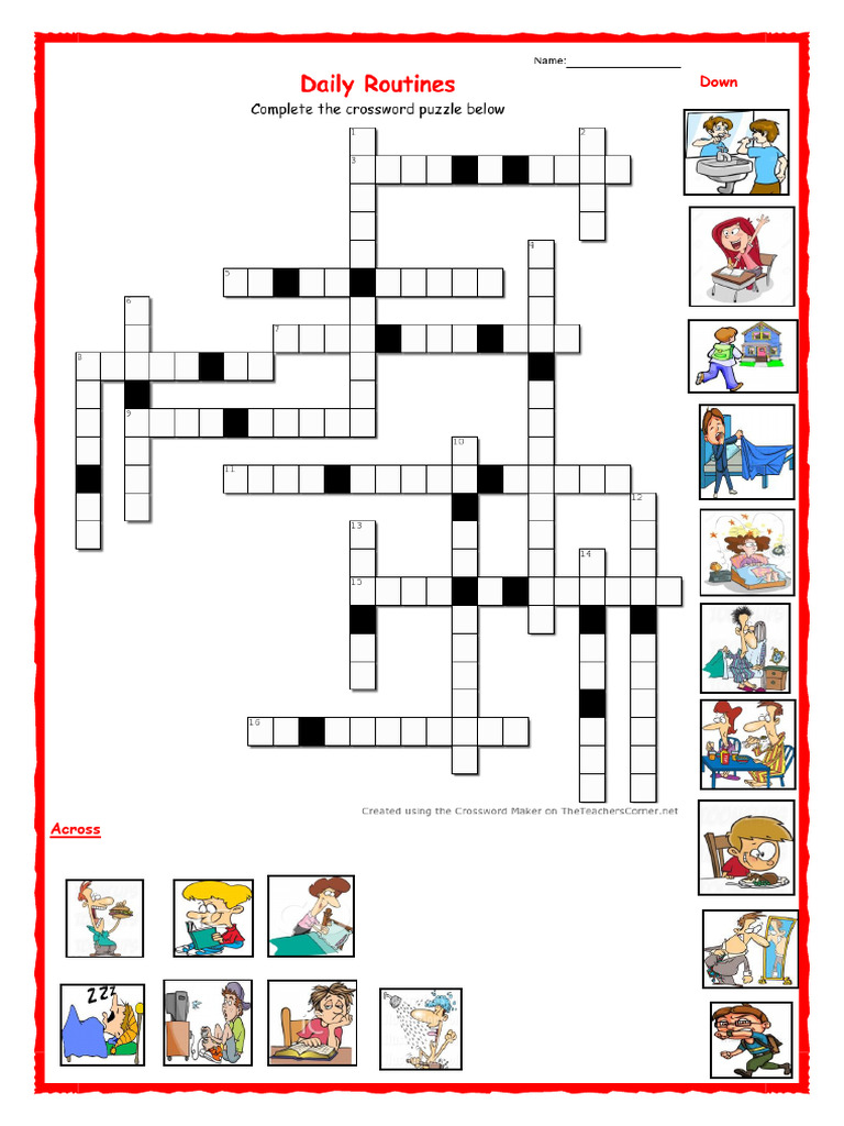 Daily Routines Vocabulary Crossword Puzzle by LearnJoy Studio TPT