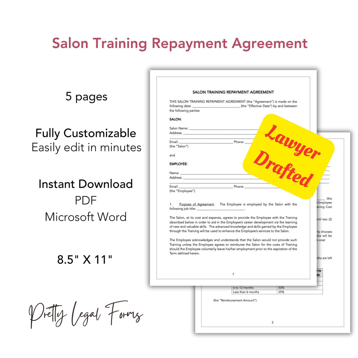 Salon Training Repayment Agreement Hair Stylist Training Reimbursement