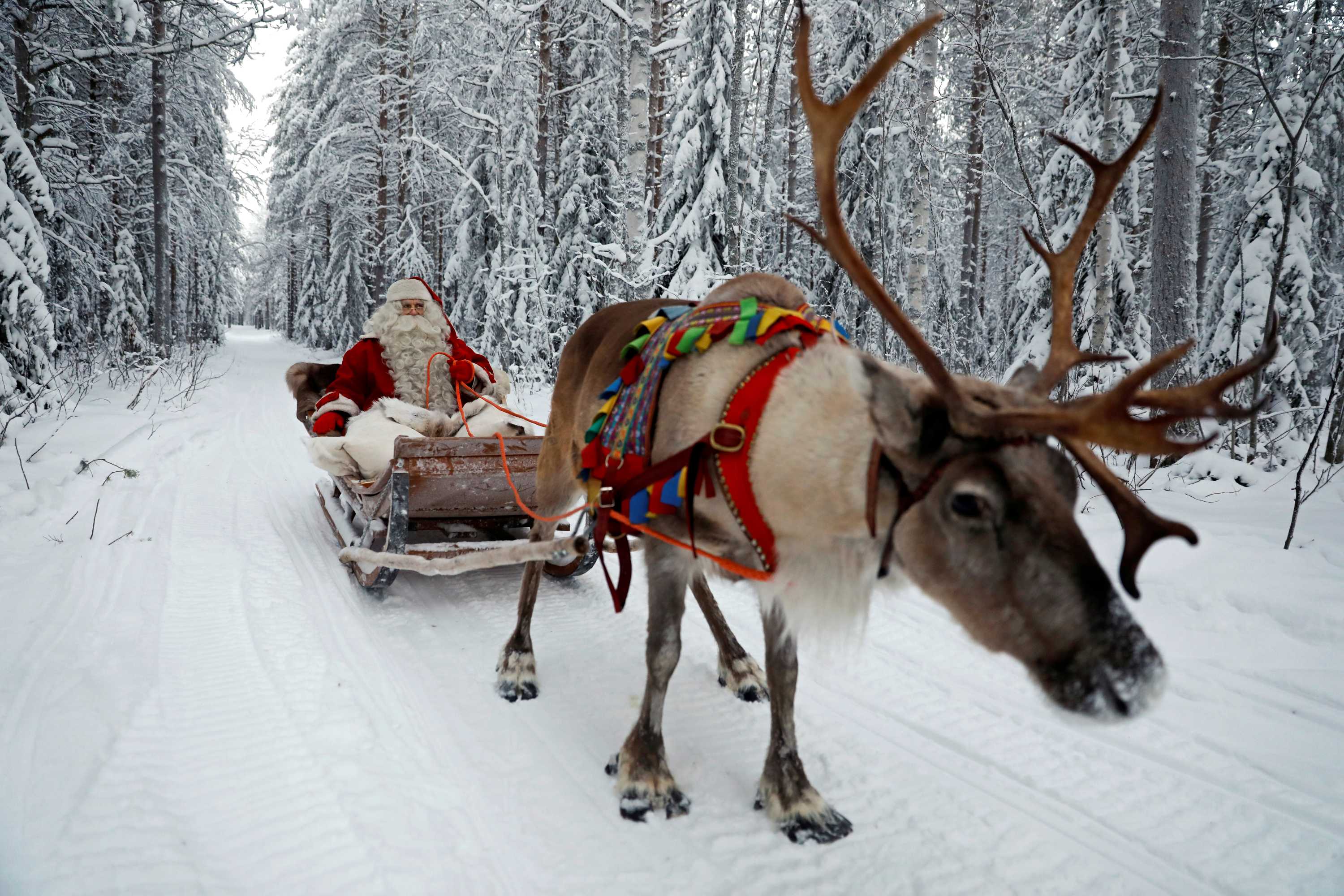 SANTA CLAUS RIDES IN A REINDEER DRAWN SLED IN FINLAND Reindeer Facts