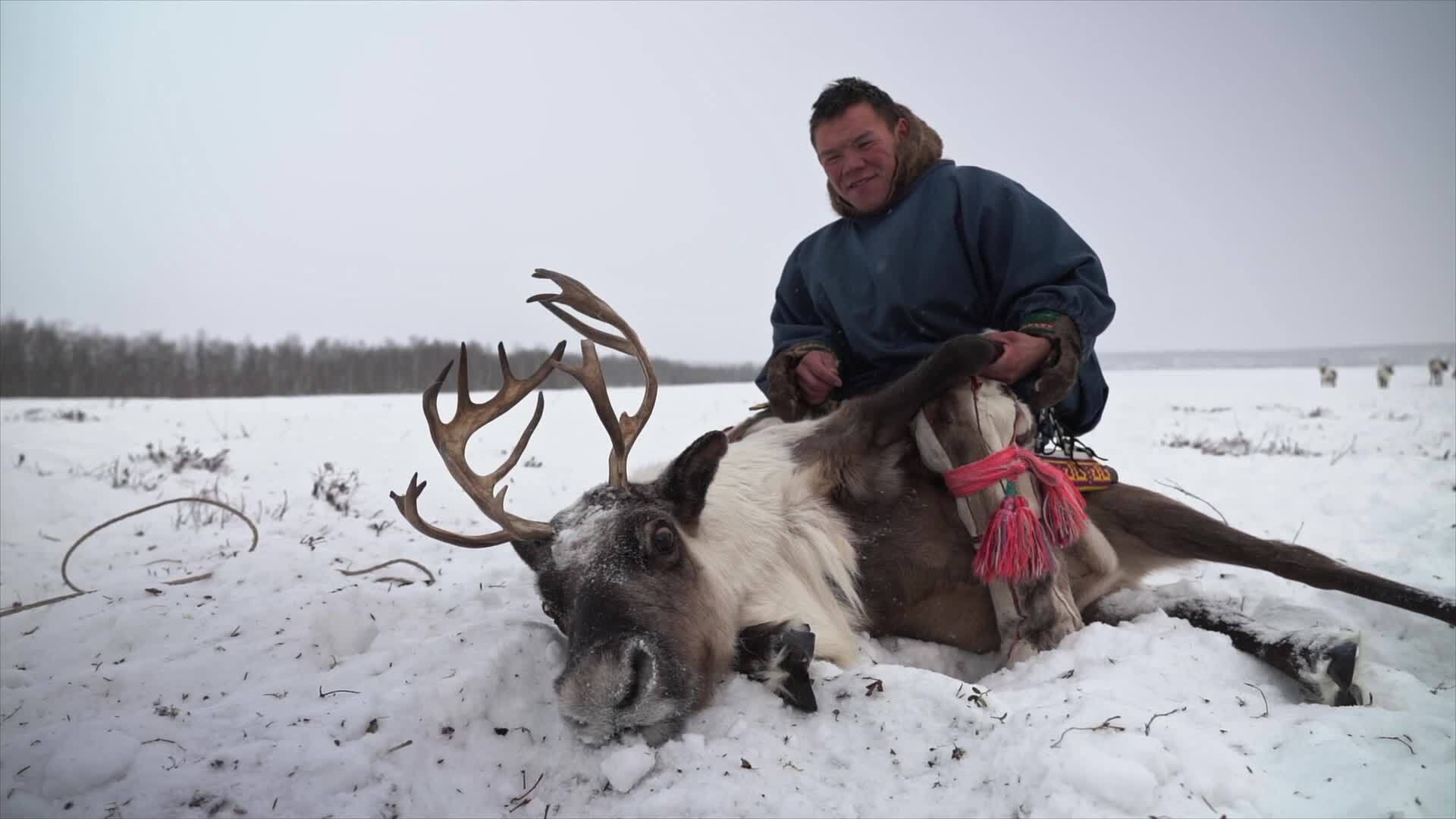 Nenets reindeer herder with reindeer 49094860 Stock Video at Vecteezy