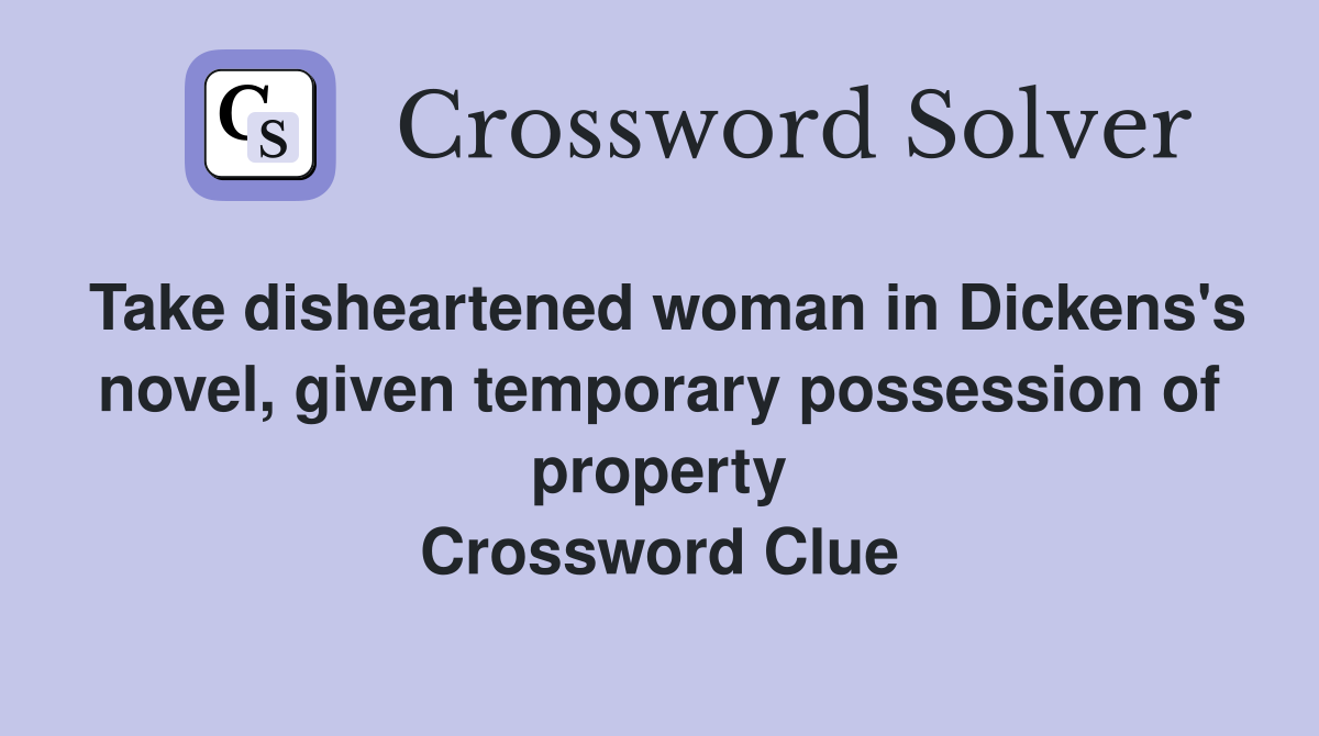 Take disheartened woman in Dickens #39 s novel given temporary possession