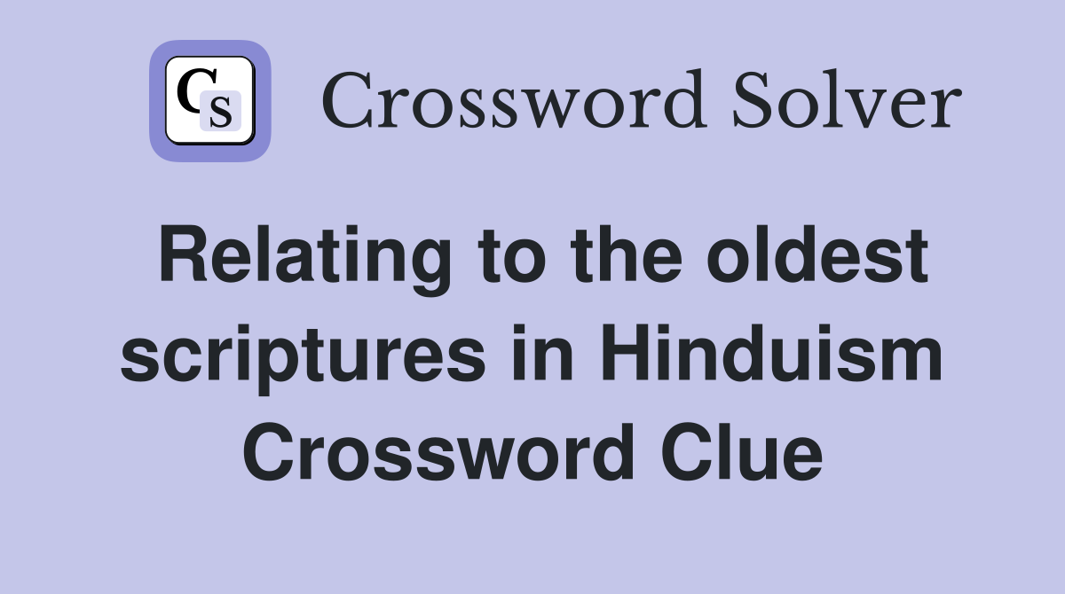 Relating to the oldest scriptures in Hinduism Crossword Clue Answers