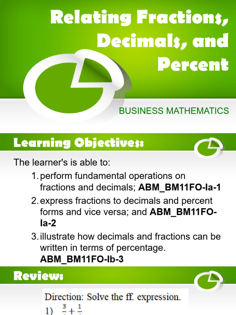 Relating Fractions PDF Decimal Numbers