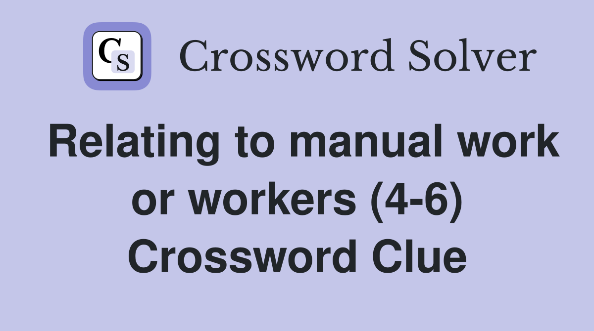 Relating to manual work or workers (4 6) Crossword Clue Answers