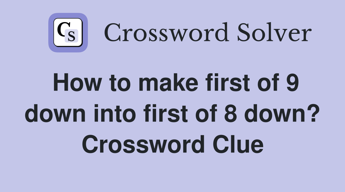 How to make first of 9 down into first of 8 down? Crossword Clue