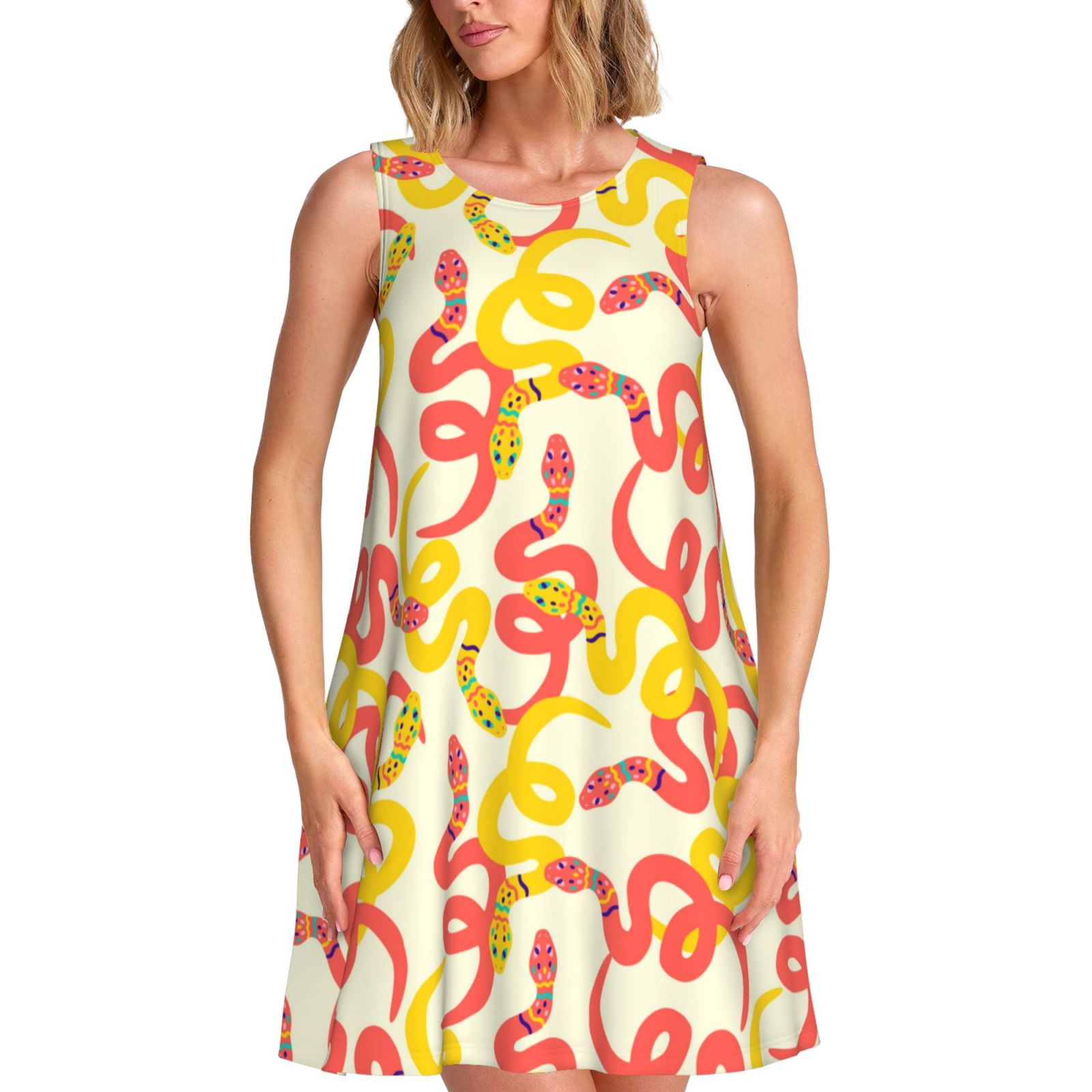 Tebeau Snake Print Women #39 s Sleeveless Dress Loose Fit Summer Dress for