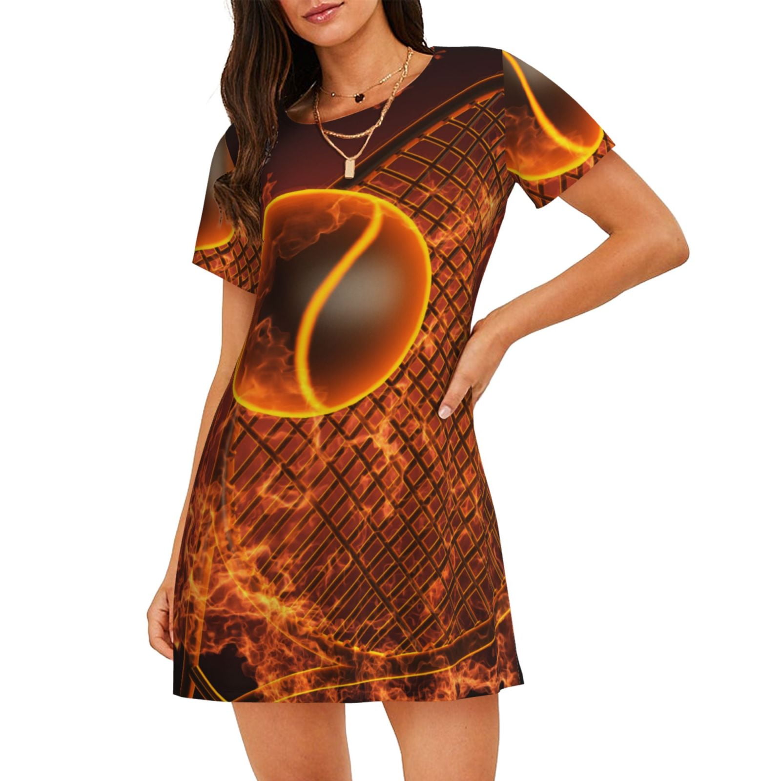 Uemuo Tennis Racket In Fire Pattern Women s Nightdress Casual Sleep