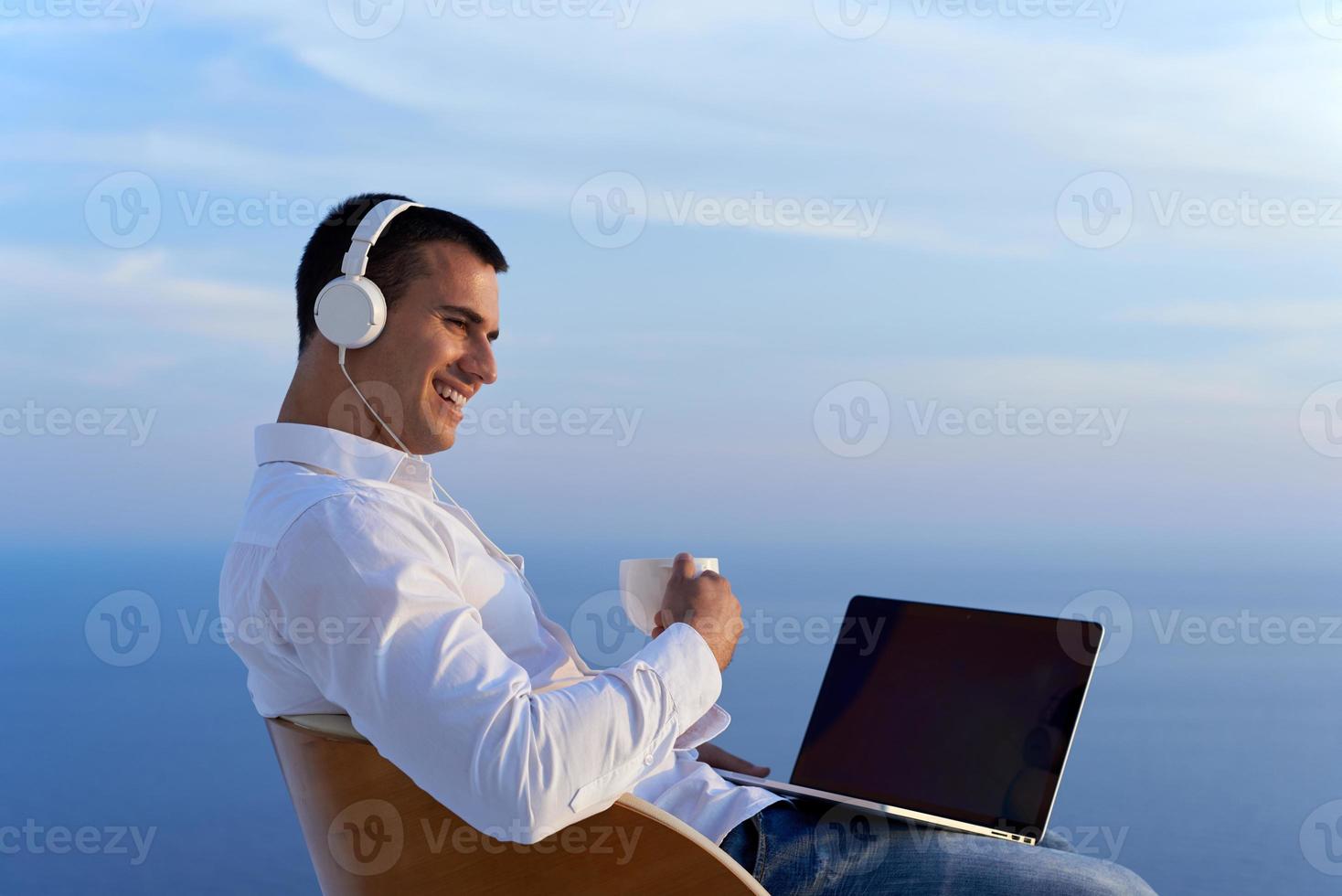 relaxed young man at home on balcony 10951703 Stock Photo at Vecteezy