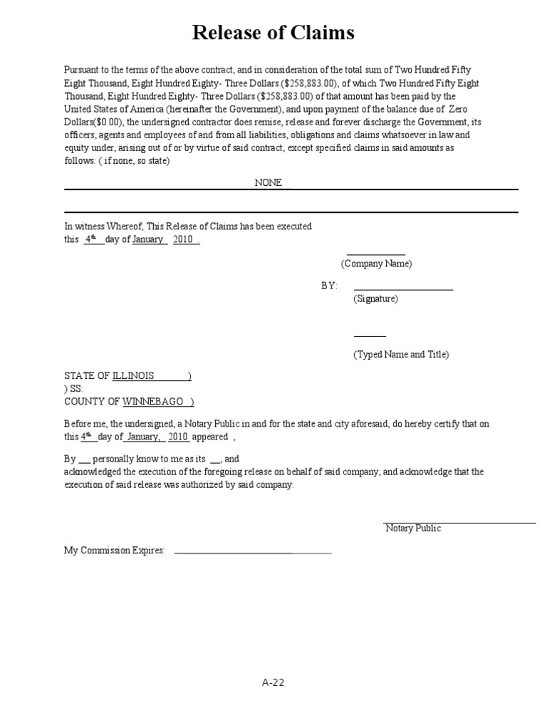 Release Of Claims Template