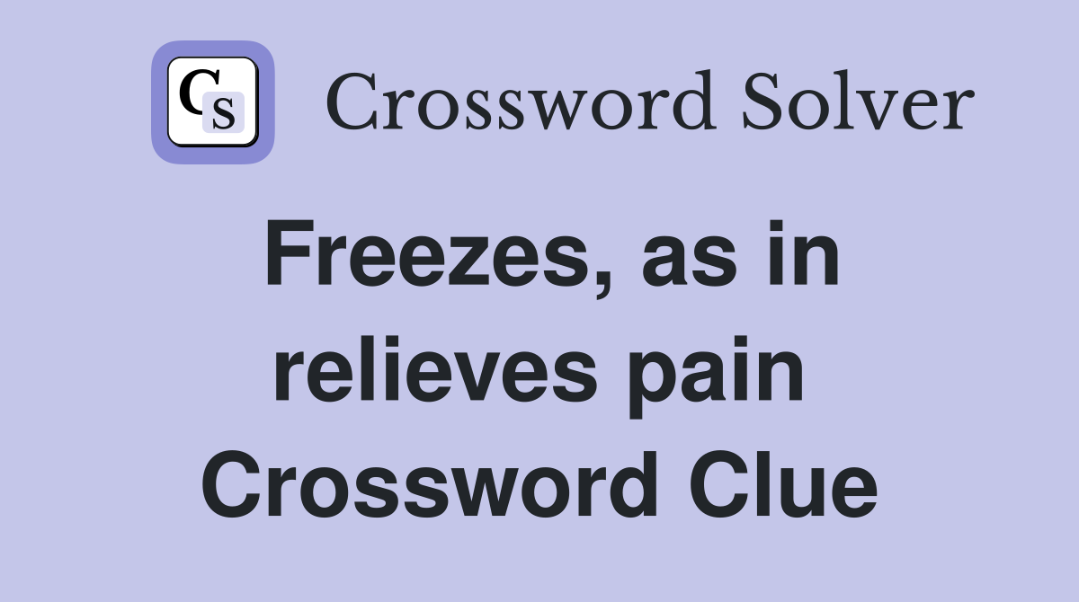 Freezes as in relieves pain Crossword Clue Answers Crossword Solver