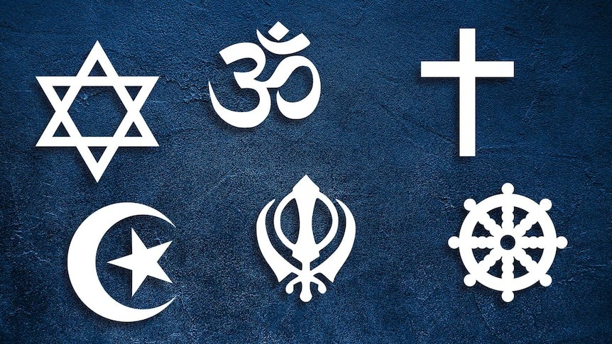 Religious symbols Christianity cross Islam crescent Buddhism dharma