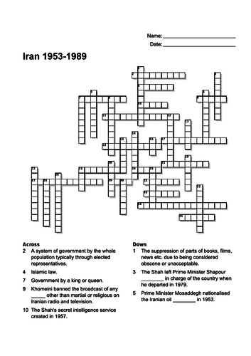 Crossword Iran 1953 1989 Teaching Resources