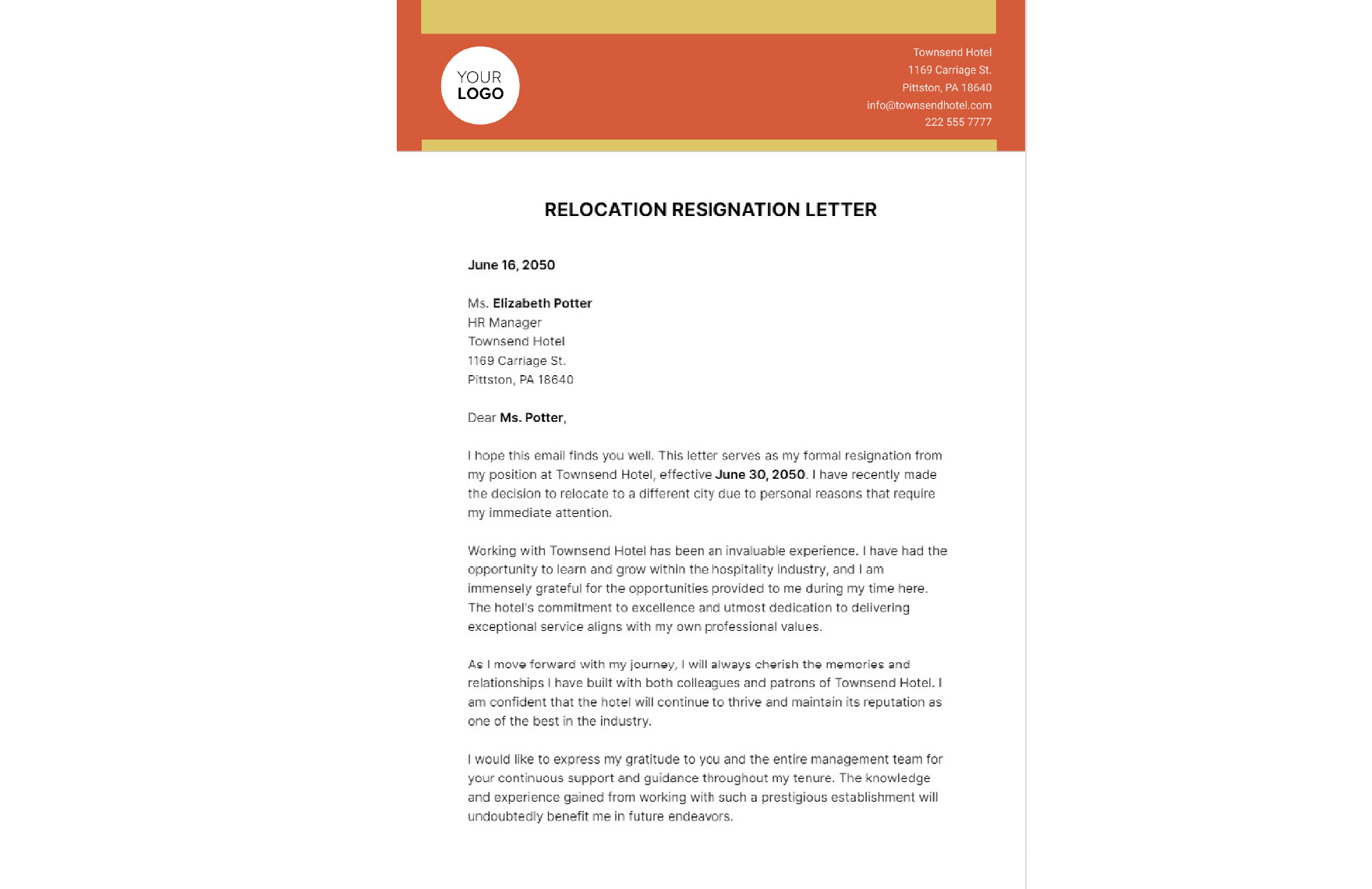 Relocation Resignation Letter Resignation Letter Resignation Template