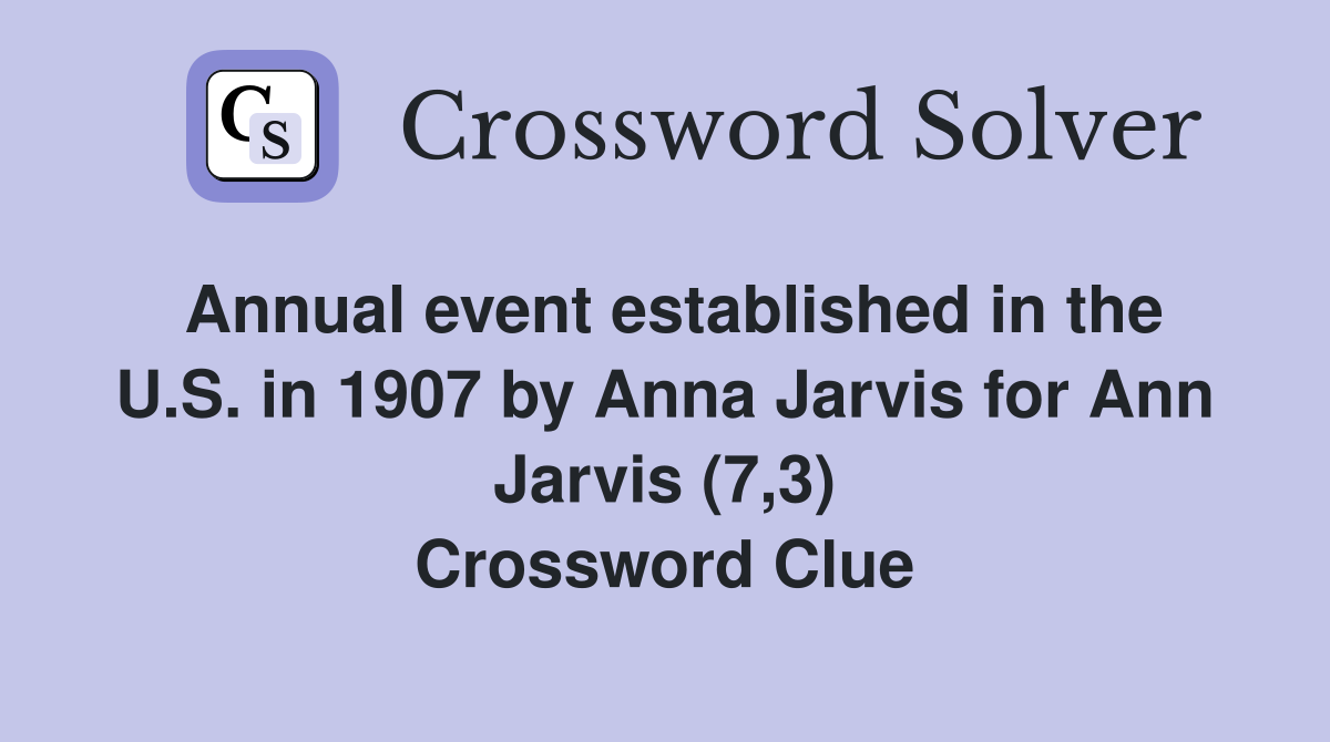 Annual event established in the U S in 1907 by Anna Jarvis for Ann