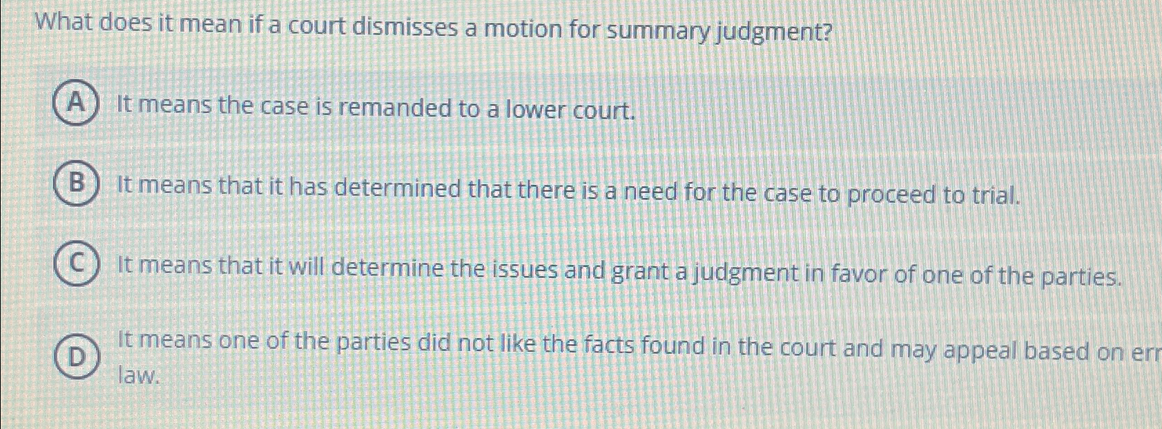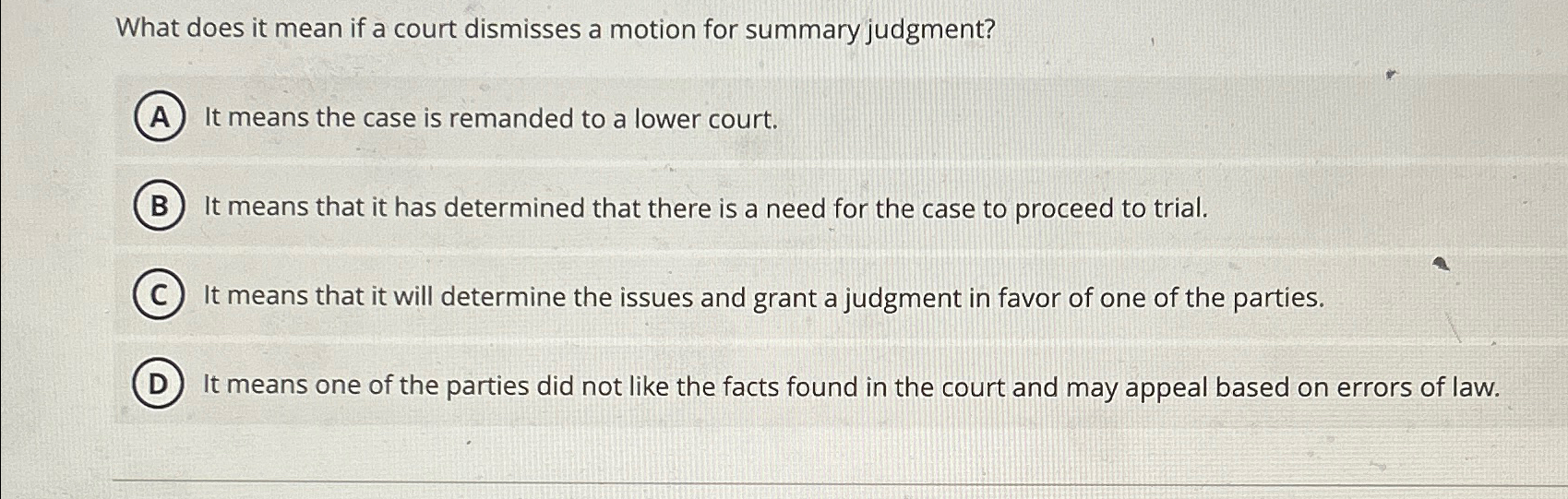 Solved What does it mean if a court dismisses a motion for Chegg com