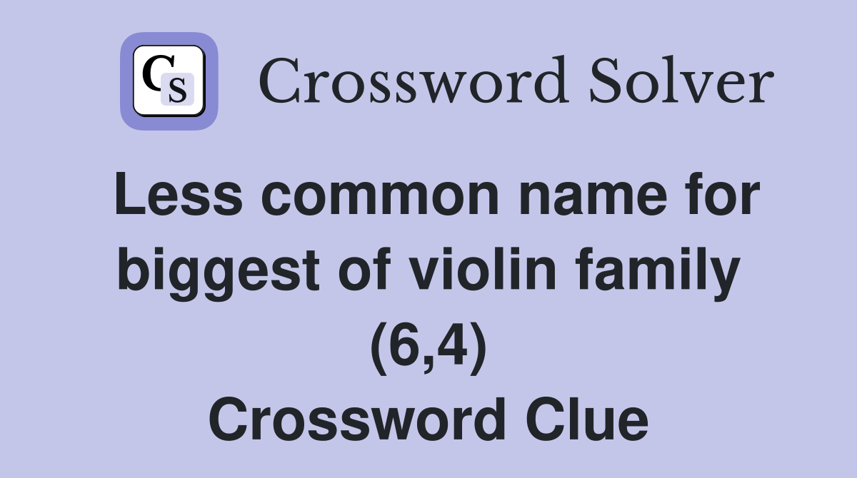 Less common name for biggest of violin family (6 4) Crossword Clue