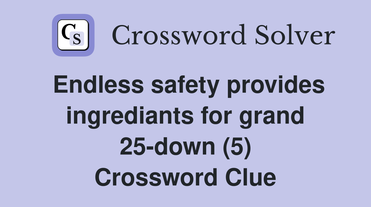 Endless safety provides ingrediants for grand 25 down (5) Crossword