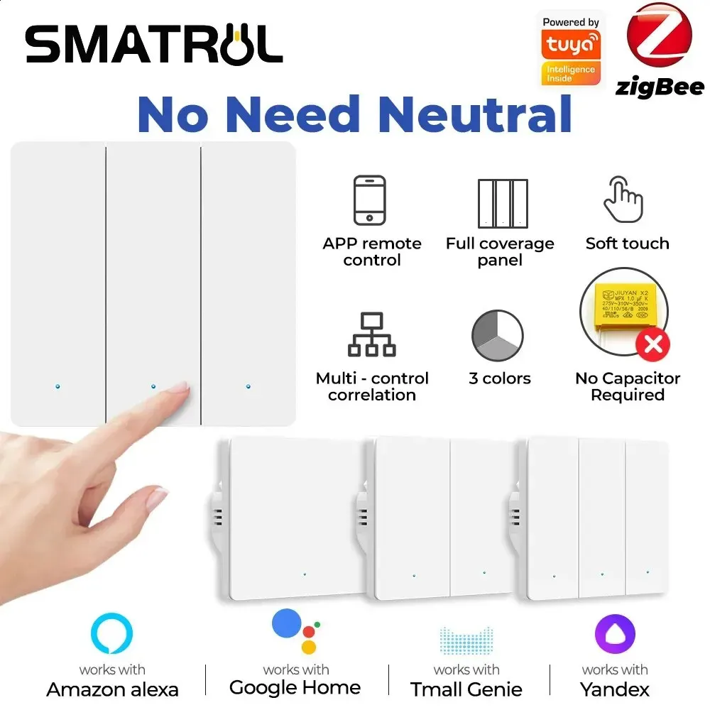 Smart Zigbee Light Switch EU Standard No Neutral Required Remote