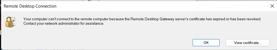 Remote Desktop Gateway Server Certificate Has Expired