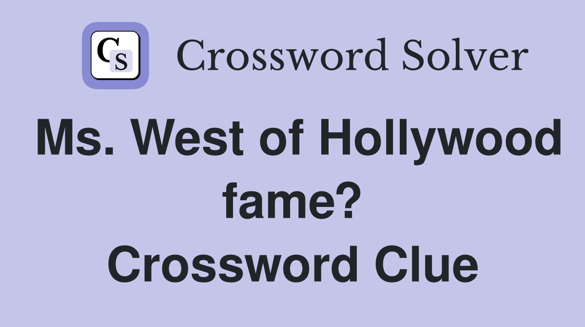 Ms West of Hollywood fame? Crossword Clue Answers Crossword Solver