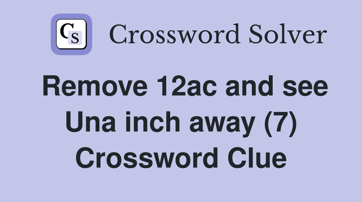Remove 12ac and see Una inch away (7) Crossword Clue Answers