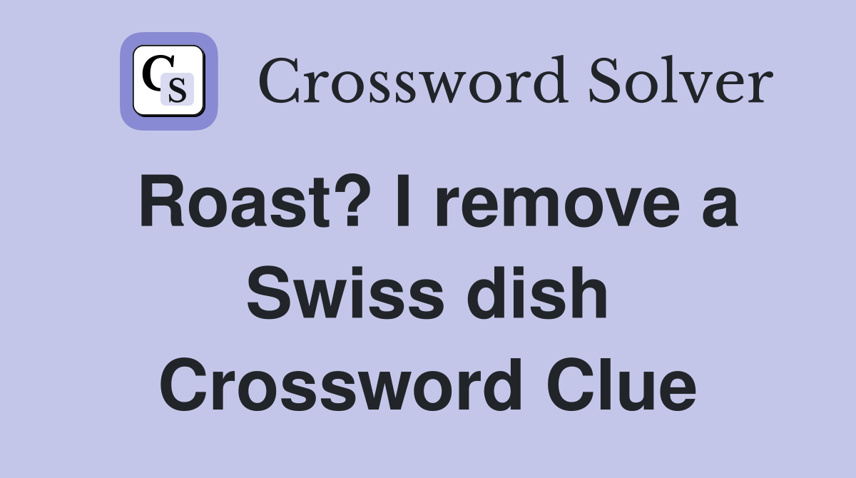 Roast? I remove a Swiss dish Crossword Clue Answers Crossword Solver