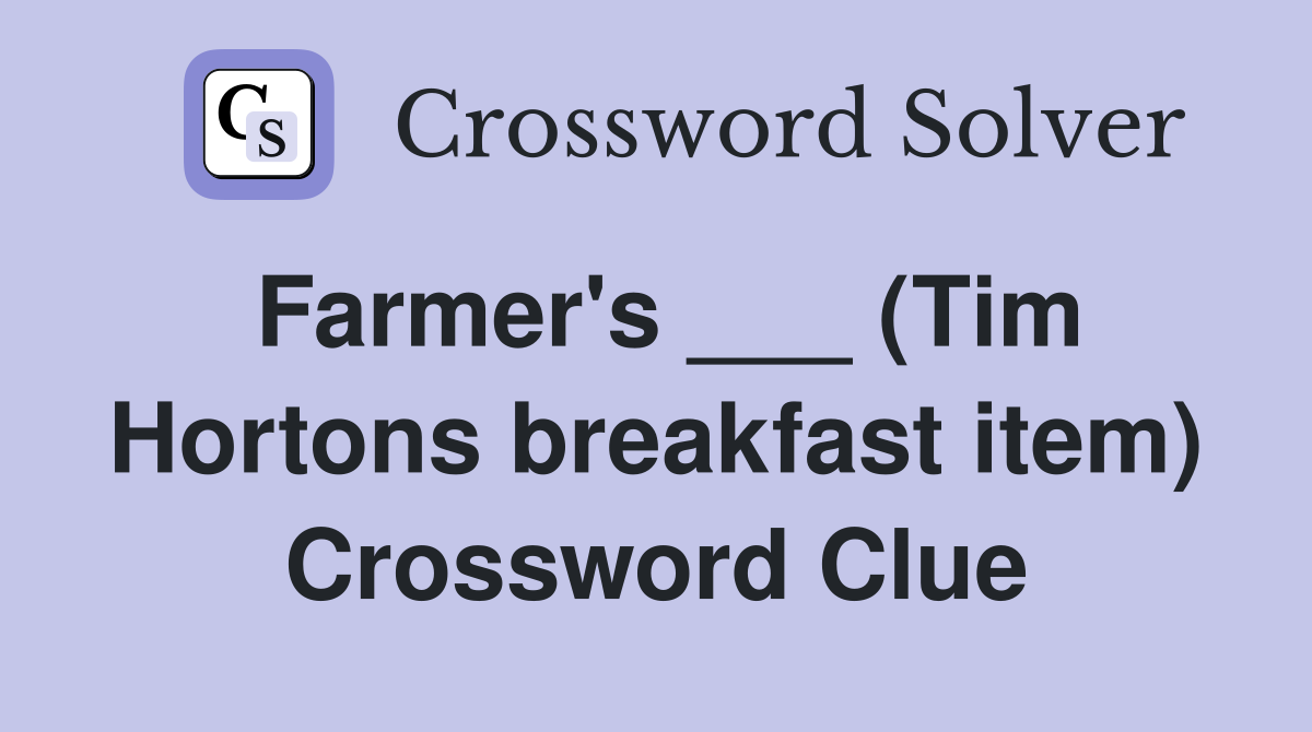 Farmer #39 s (Tim Hortons breakfast item) Crossword Clue Answers