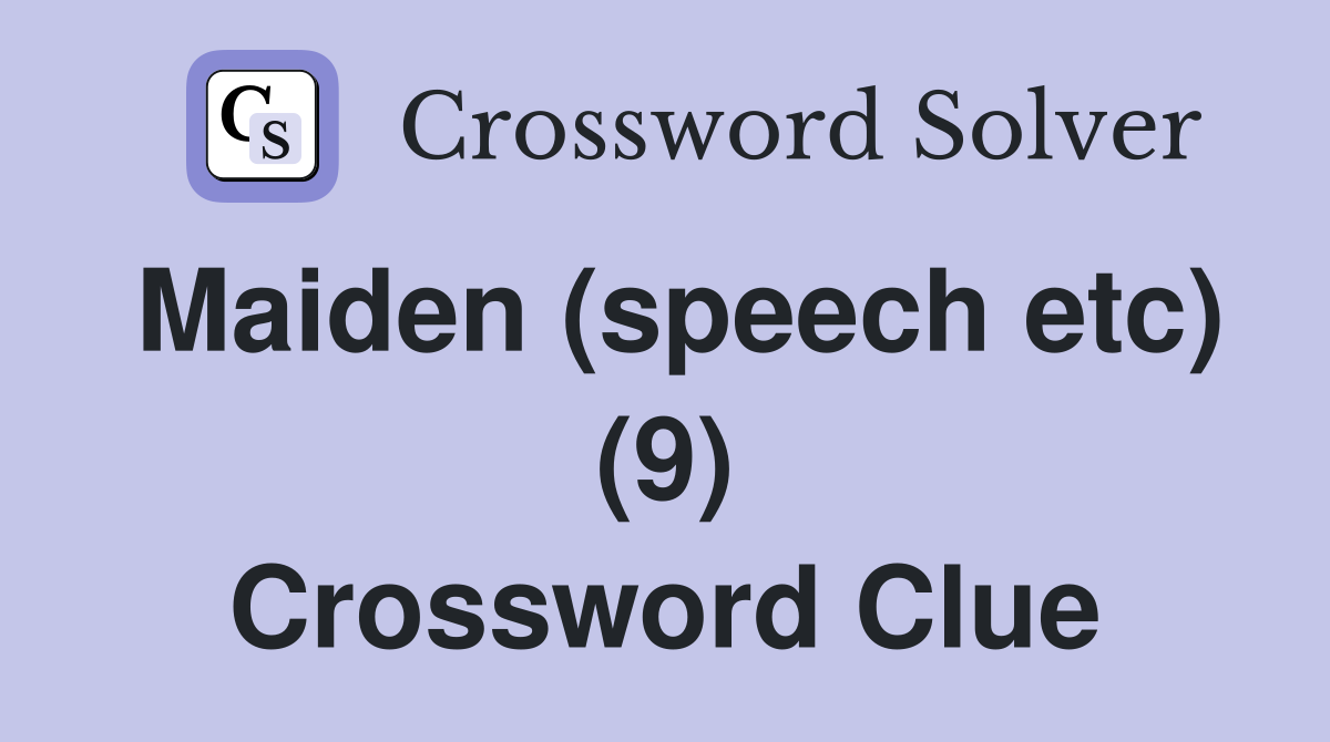 Maiden (speech etc) (9) Crossword Clue Answers Crossword Solver