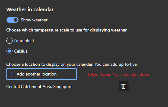 Cannot add/remove weather location in Outlook calendar Microsoft Q A