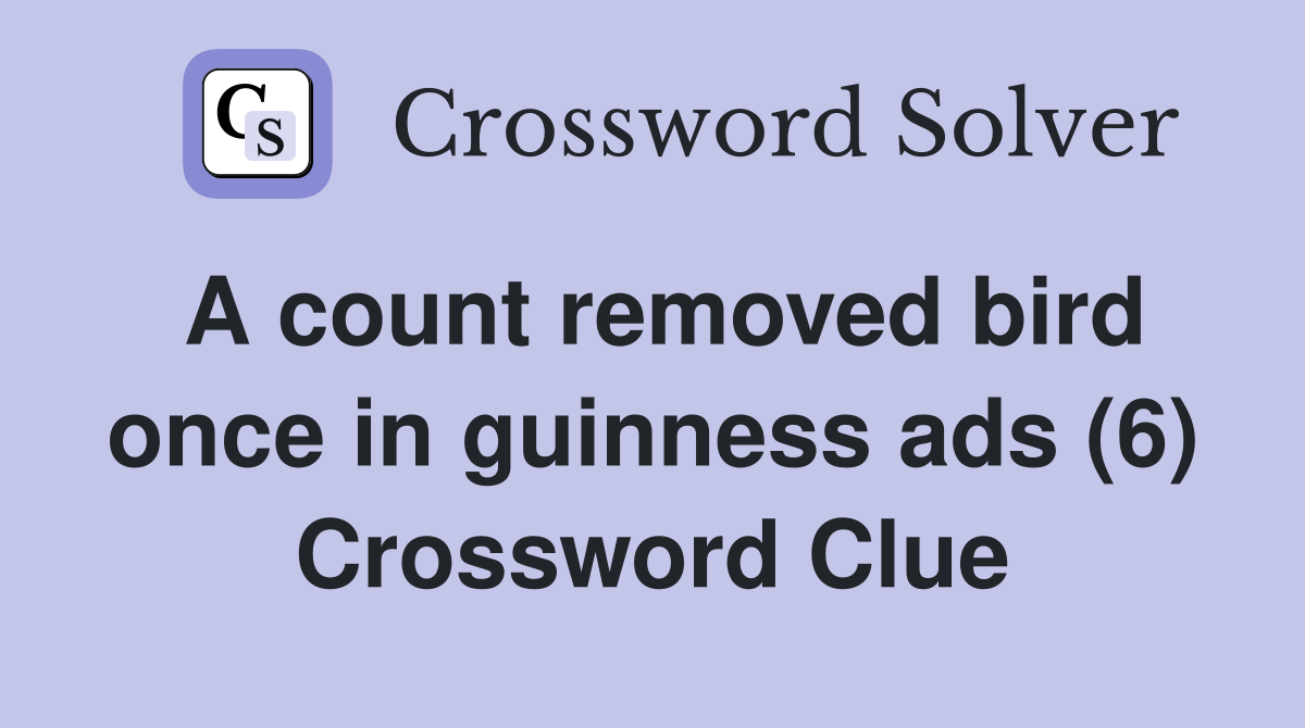 A count removed bird once in guinness ads (6) Crossword Clue Answers