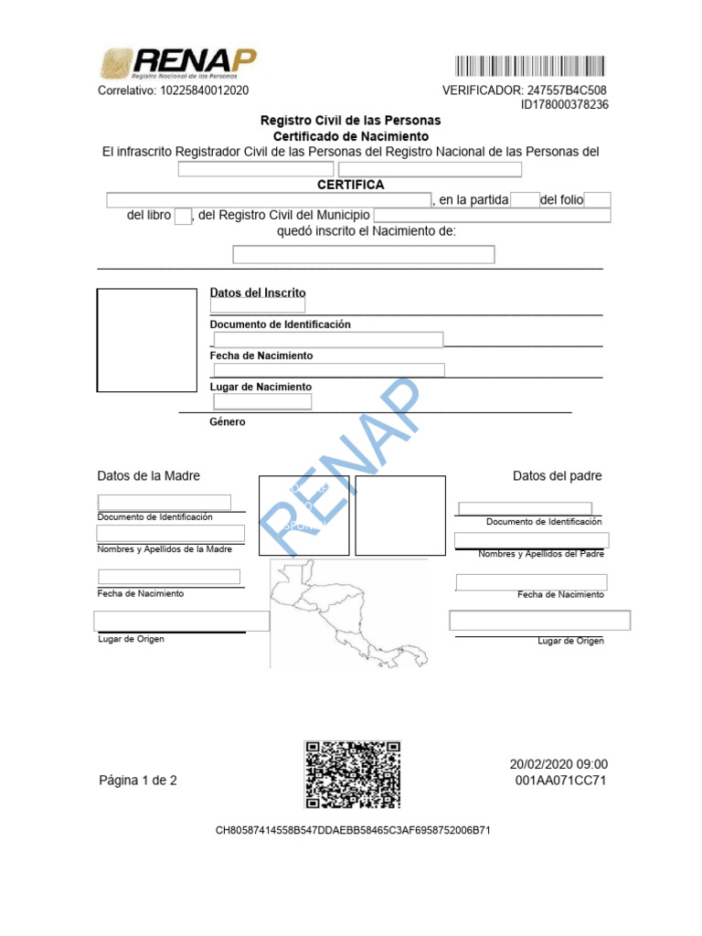 Certificado de Nacimiento Renap PDF Certificado de nacimiento