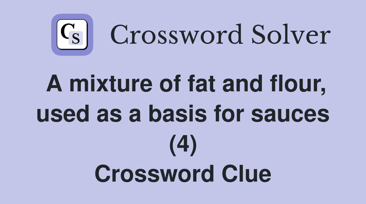 A mixture of fat and flour used as a basis for sauces (4) Crossword