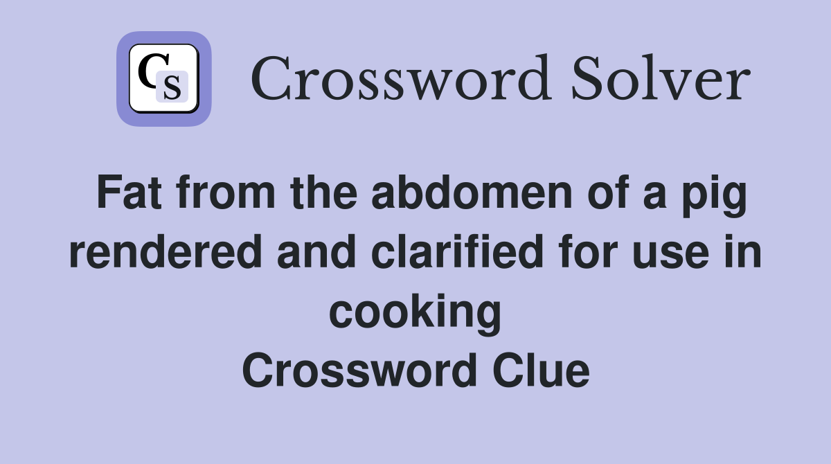 Here are some of the images for Rendered Fat Crossword Clue that we found in our website database.