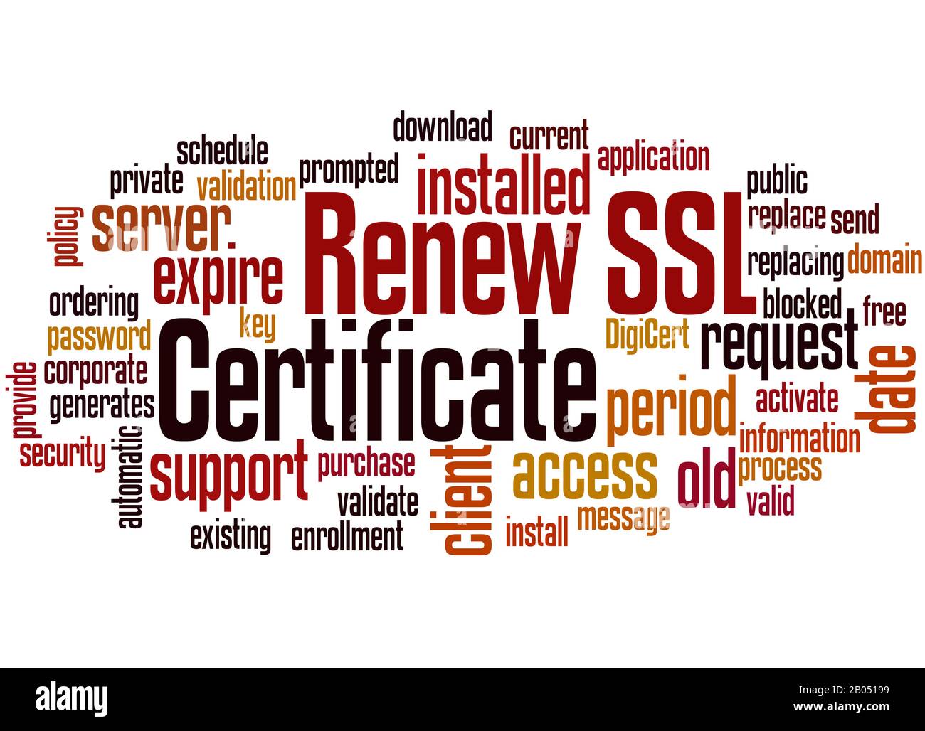 Renew SSL Certificate word cloud concept on white background Stock